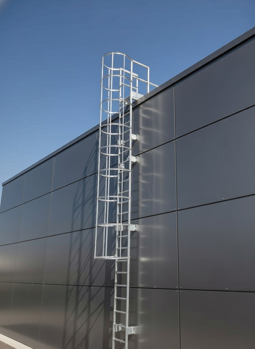 - Połączenie odcinków drabiny (zazwyczaj M10–M12 śruby nierdzewne / ocynk)